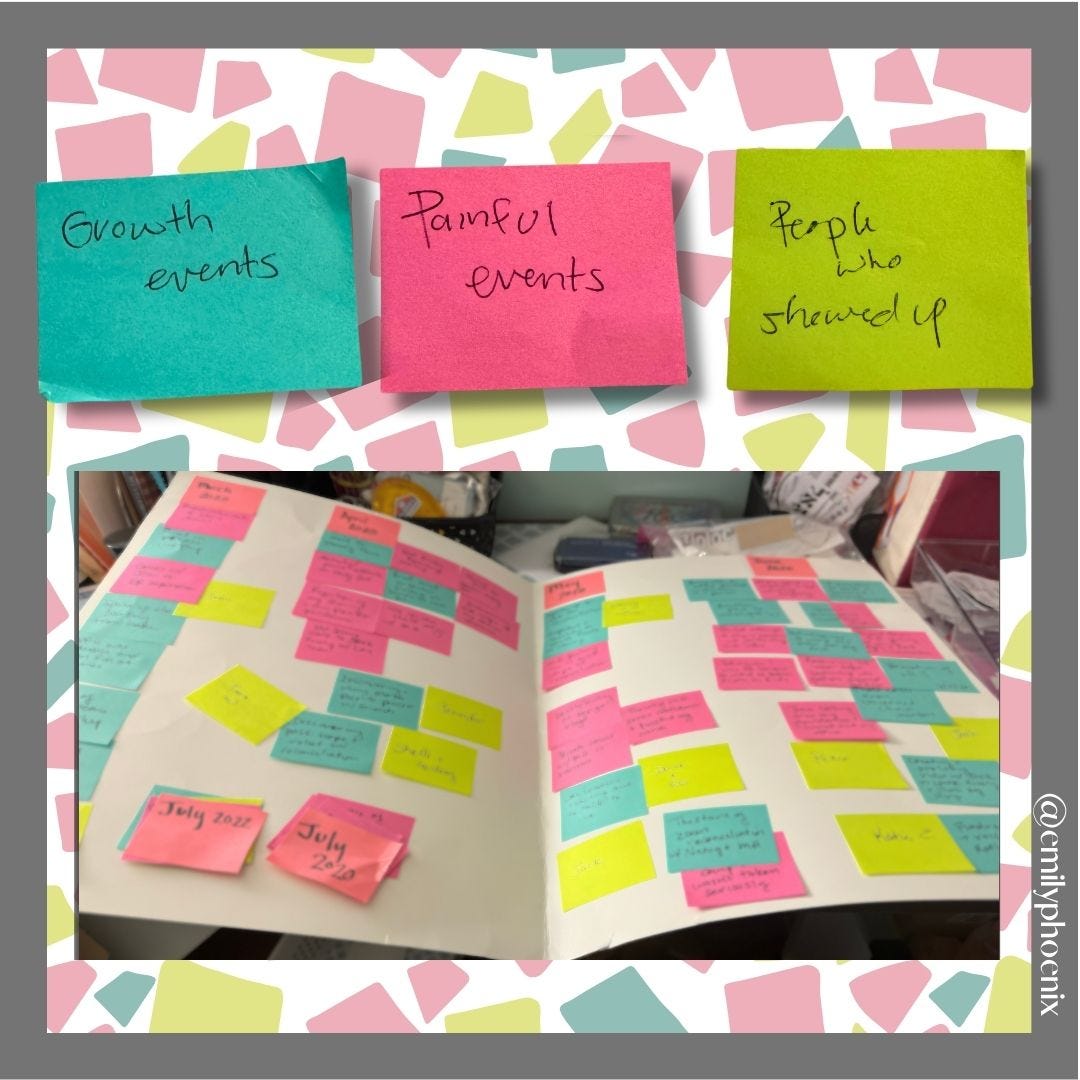 Last year, after a convo with my therapist, I wrote down all the events connected to my trauma from March - June 2020 and a few additional significant events that happened after that. Instead of a public blog post or private journal entry, I used a tool I had learned about 10 years ago, through a learning community that I will forever be grateful for.